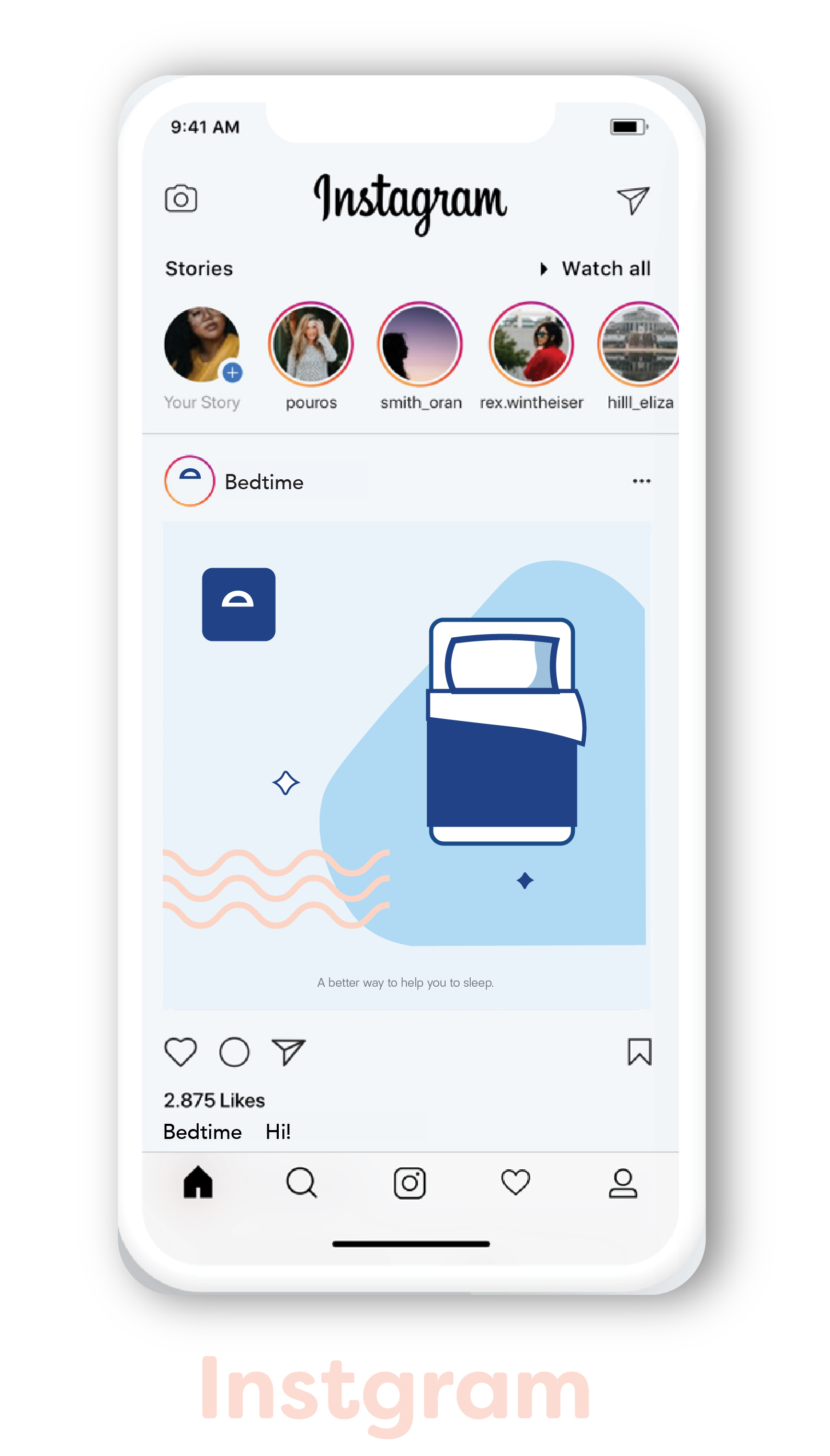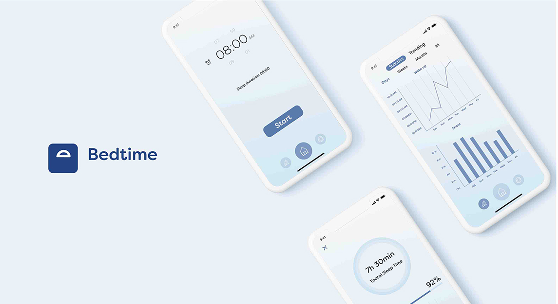 Bedtime's logo is inspired by the letter “e” which is in its name. I cut it and the half”e” looks like the bed headboard. I chose dark blue color because dark blue is a good soothing color to help people to fall asleep.