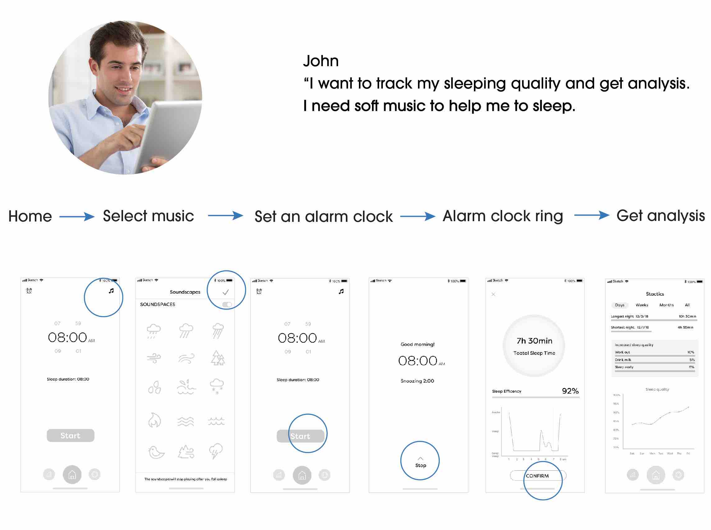 Track users sleep using sound analysis to identify sleep status, tracking users’ movements in bed.