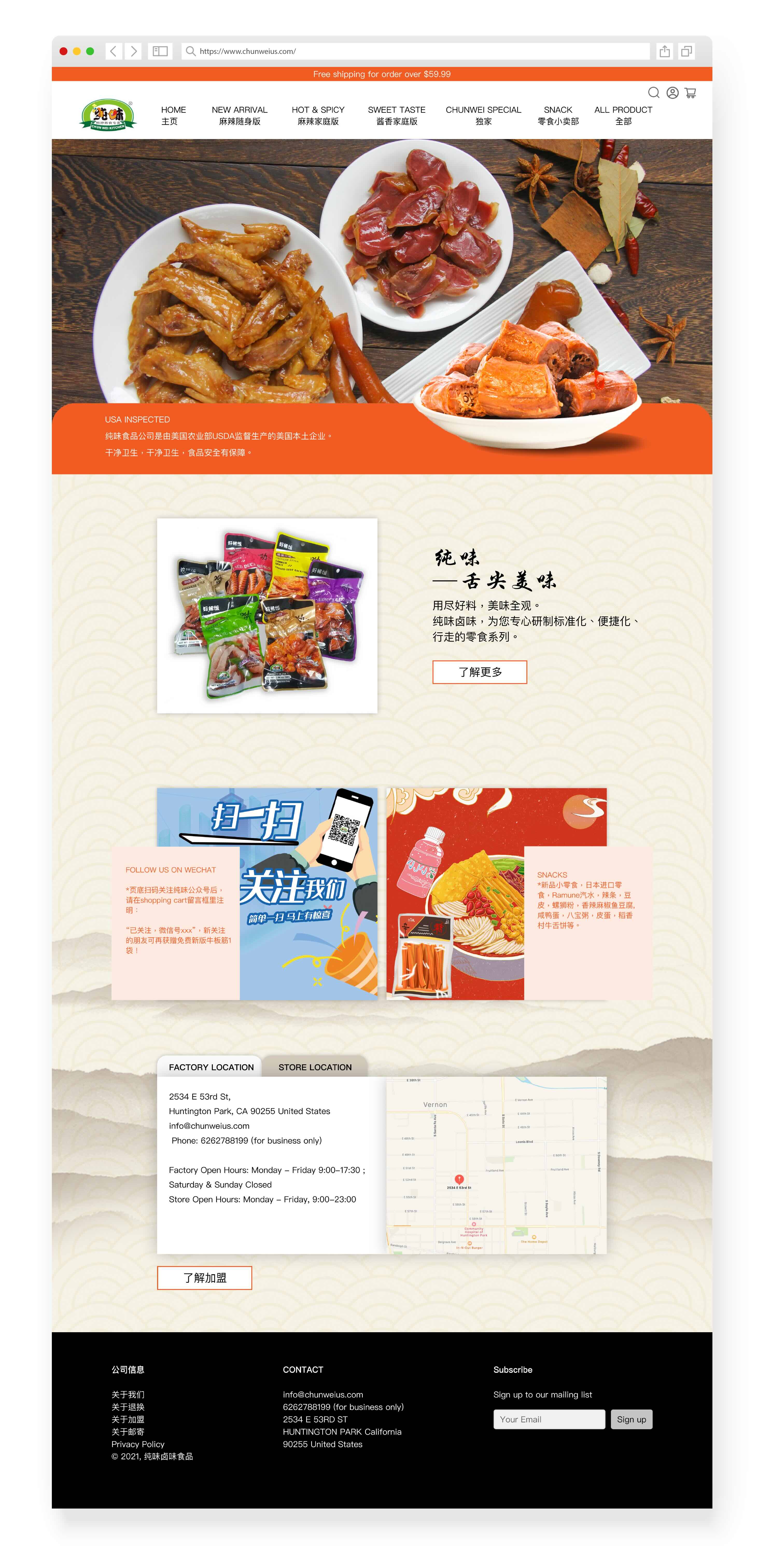 Chunwei is a USDA-regulated U.S. food manufacturer with headquarters and manufacturing facilities currently located in Los Angeles. California. Chunwei brands are deeply welcomed by the Chinese in the market. I redesigned the retail website's home page, product pages and passionfruit chicken feet packaging for the company.