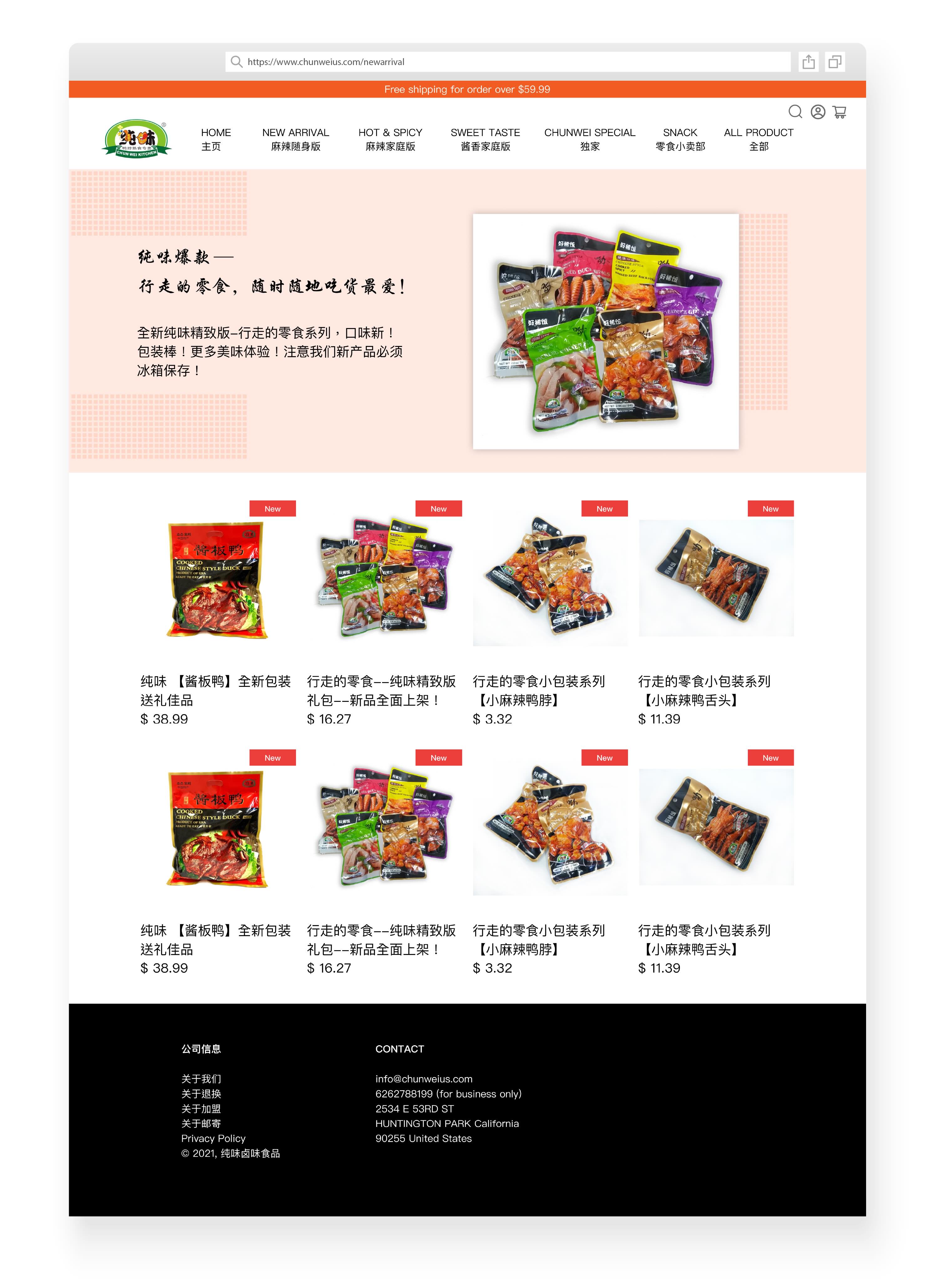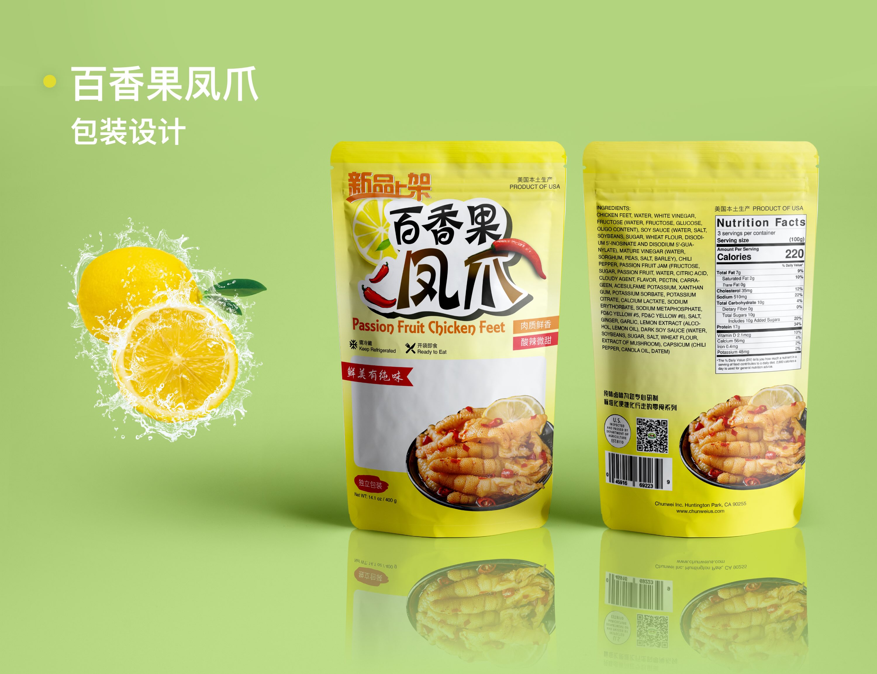 Chunwei is a USDA-regulated U.S. food manufacturer with headquarters and manufacturing facilities currently located in Los Angeles. California. Chunwei brands are deeply welcomed by the Chinese in the market. I redesigned the retail website's home page, product pages and passionfruit chicken feet packaging for the company.